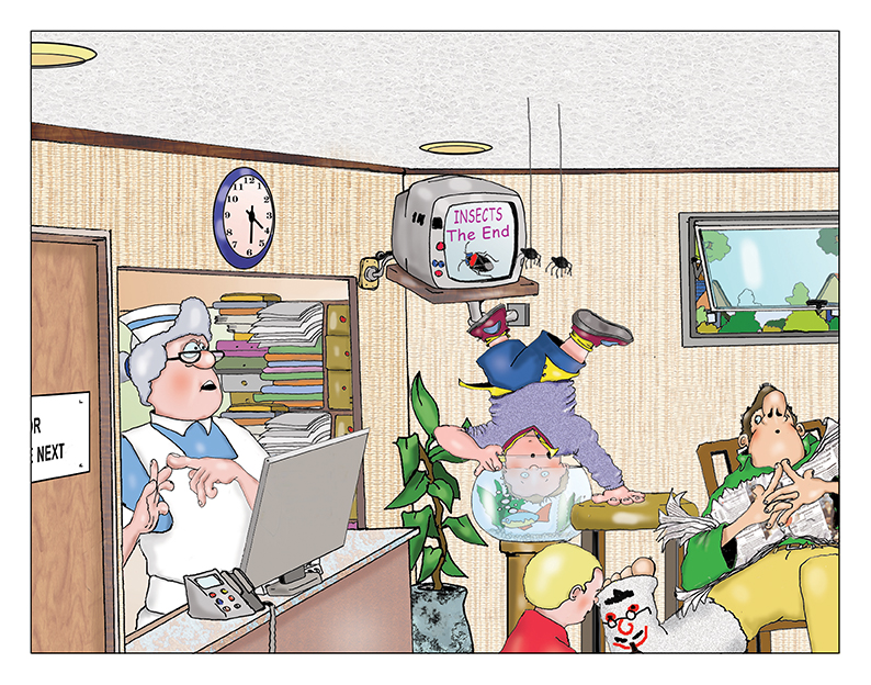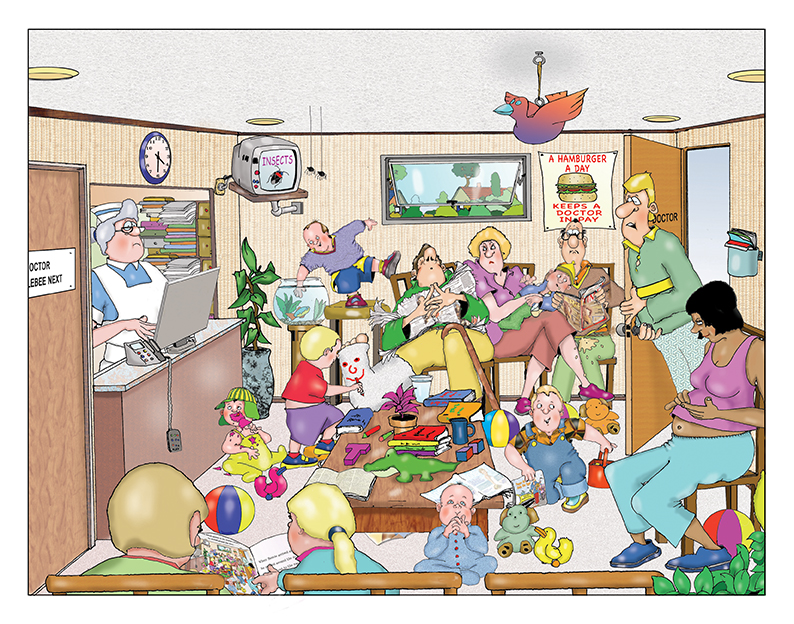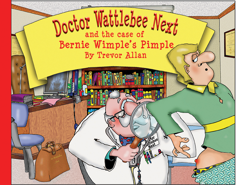 A 24 page children’s book with detailed funny cartoon illustrations. Bernie Wimple has a pimple in a rather awkward place and decides to visit Doctor Wattlebee Next, looking for a cure. The Doctor has a novel way to fix Bernie’s problem.